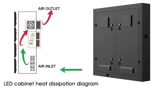 The outdoor LED display cabinet uses a dual circulation system for heat dissipation, This does a good job of dissipating the heat generated when the screen is running.